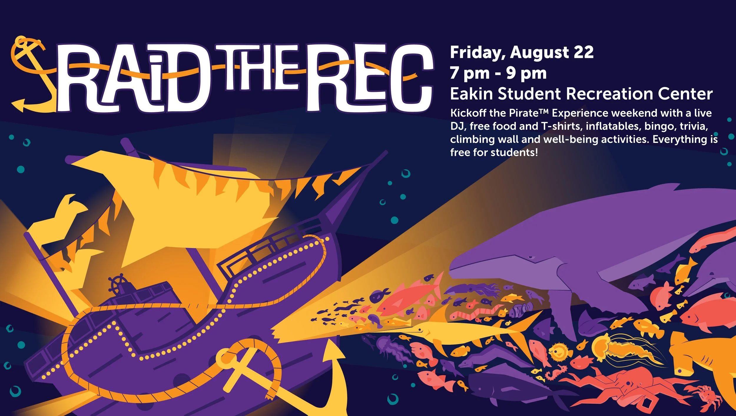 I was tasked with the main design & creative direction for this project. After I was given direction to go for a carnival-themed design, I made materials that illustrated an underwater or shipwrecked carnival. The design had to include a pirate ship, as well as follow the brand guidelines for East Carolina University. I designed banners, posters, merchandise, social media posts, & navigational signage for the event.